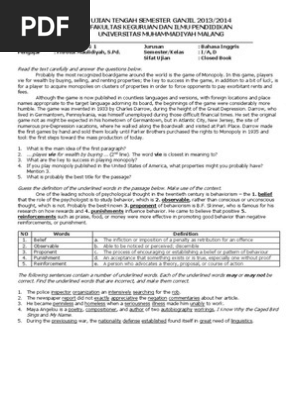 Soal Uts Bahasa Inggris Reading Punishments Reinforcement