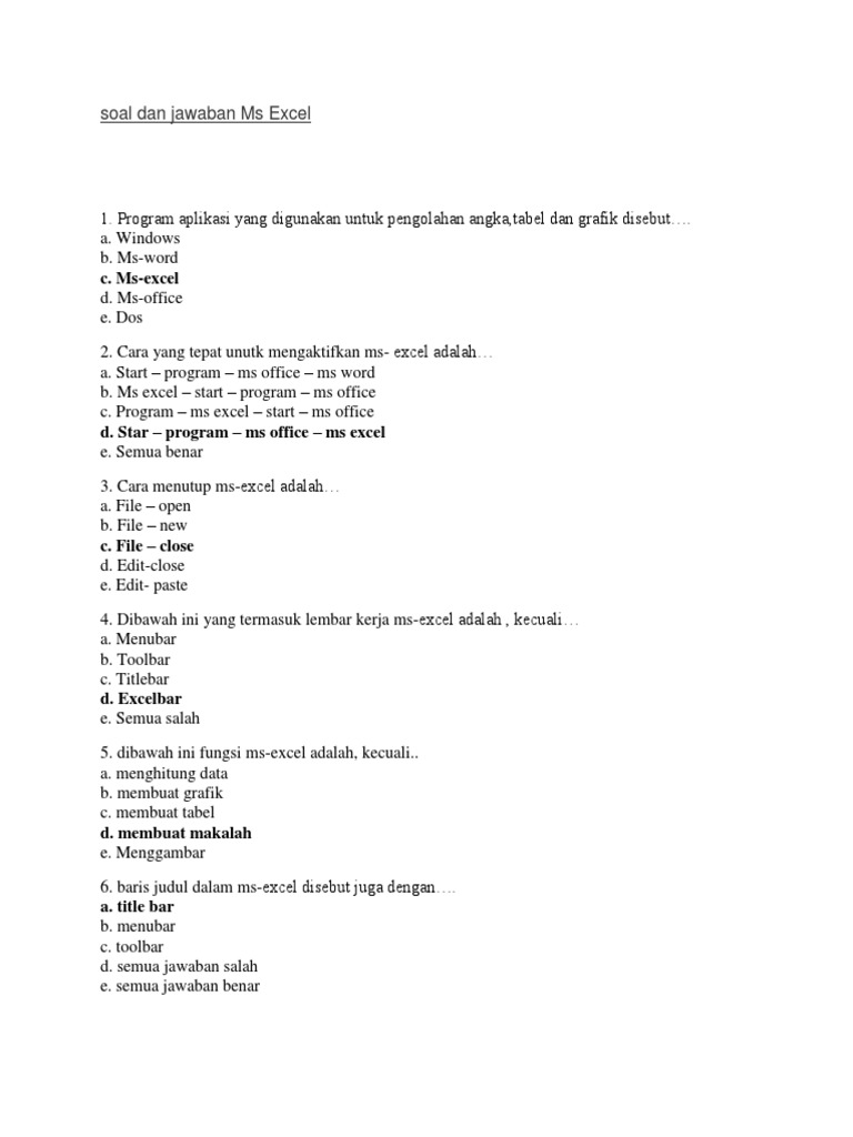 Dibawah Ini Fungsi Ms Excel Adalah Kecuali Jawabanku Id